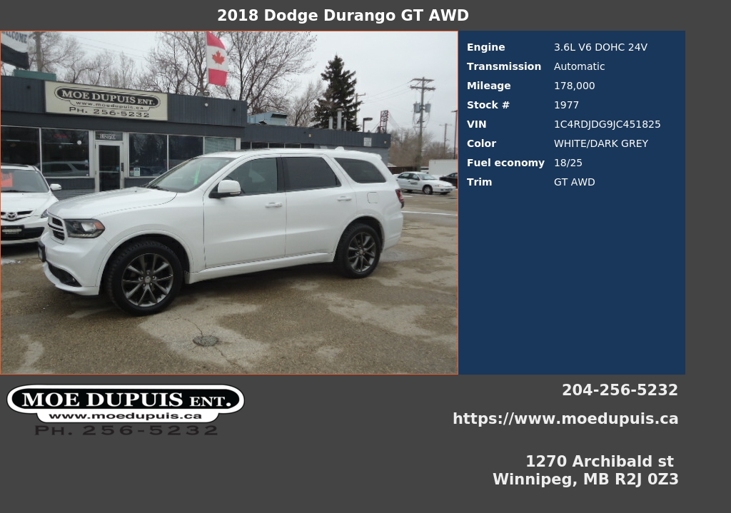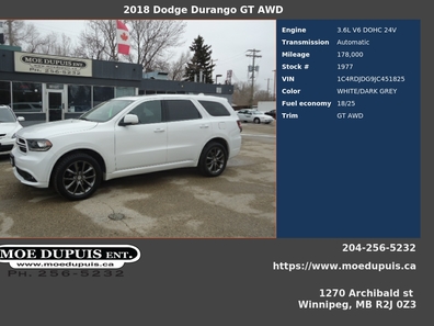 LOOKING FOR A FAMILY HAULER BUT DONT WANT A MINIVAN?? THEN HERE IT IS!! LOADED WITH ALL THE GOODIES !! LEATHER! SUNROOF! HEATED SEATS AND STEERING! DUAL SCREEN FOR THE KIDS!! 7 PASSENGER ! SUPER CLEAN !! RUST FREE VANCOUVER ISLAND FIND!! A REASONABLE 178 000KMS!! JUST SAFETIED AND SERVICED! ON SALE NOW FOR ONLY $22,986 PLUS PST AND GST! WARRANTY AND VARIOUS FINANCING OPTIONS AVAILABLE OAC. VIEW @ MOE DUPUIS ENTERPRISE INC. CONVENIENTLY LOCATED @ 1270 ARCHIBALD ST. ONE BLOCK NORTH OF FERMOR OR CALL BRYAN FOR APPT TO VIEW @ 204 256 5232 OR 204 941 9080 OR 24/7 @ WWW.MOEDUPUIS.CA DEALER #4194